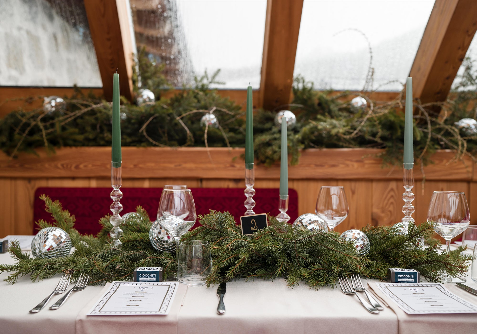 Dettagli raffinati in armonia con la natura circostante, per creare atmosfere indimenticabili sotto il cielo di montagna.